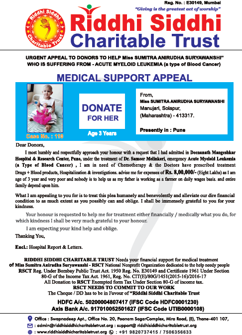 Lakhs) as I am age of 3 year and very poor and nobody is to help