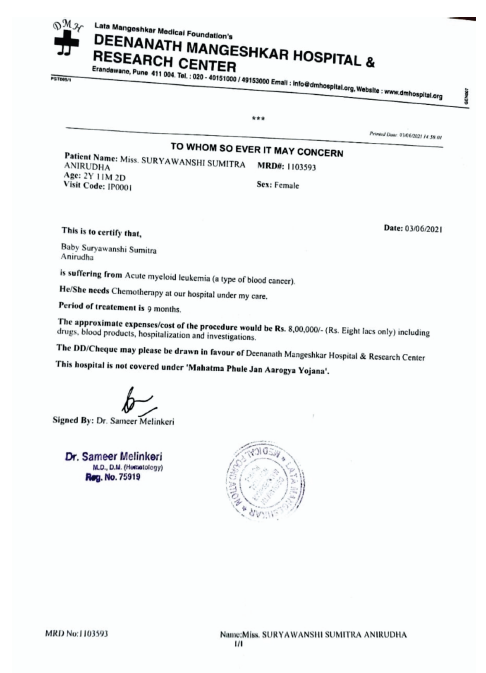 request that I had admitted in Deenanath Mangeshkar Hospital &