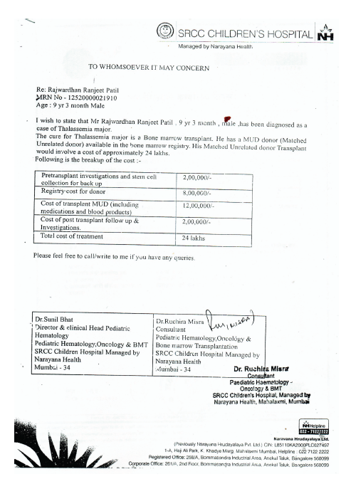 that I had admitted in SRCC CHILDREN’S HOSPITAL Mahalaxmi,